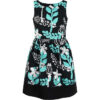 Cap sleeve dress with A-line skirt, with pockets and round neckline